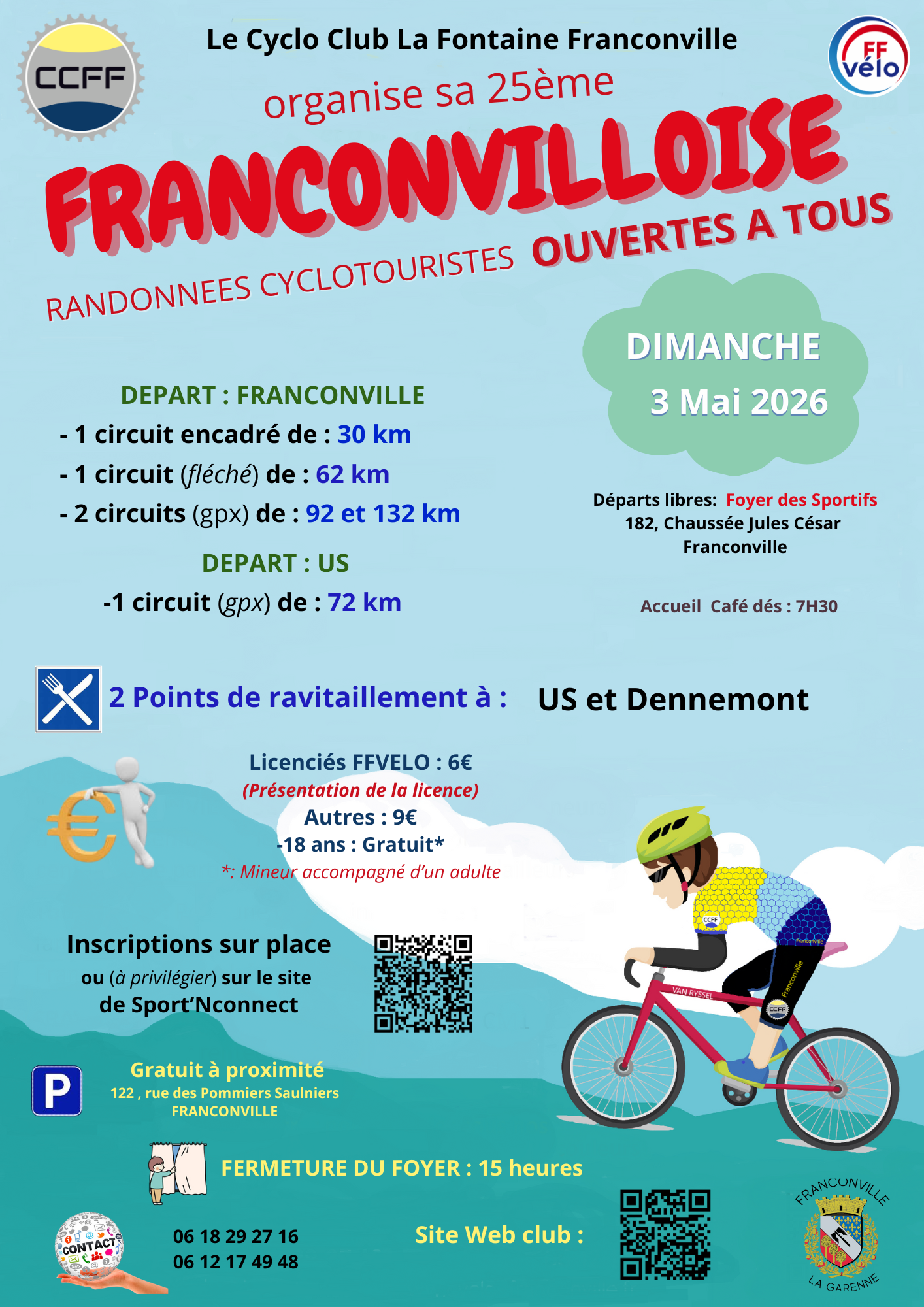 3 Mai : Franconvilloise 63, 92 et 134km depuis Franconville et 72 depuis Us